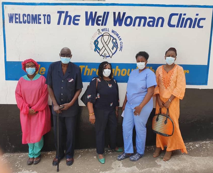 On Friday, March 19, 2021, the Well Woman Clinic (WWC) received a donation of Le12 million from the Jestina V. Jones Memorial Fund. WWC’s documentation of how they spent the past year’s donation of Le8 million was remarkable. Forty-four (44) individuals received free health services that included breast cancer screening, ultra sound scans, chemotherapy medication, lab tests, and diabetes screening. In spite of a difficult year during the COVID-19 pandemic, the report from WWC mentioned recent expansion of their health services in 2020 to include a pilot cervical cancer screening program, a new construction of an ante-natal annex, and a new position of a resident doctor. Dr. Dinsie Williams, the new Chairperson of the JVJ Memorial Fund, presented the check to the Programme Director of Well Woman Clinic, Mrs. Jennifer Renner-Thomas. Le2 Million was specified in support of the new cervical cancer screening programme and the remaining Le10 million towards the breast cancer screening programme. Dr. Teddy Jones, widower of Jestina Jones, was also present.