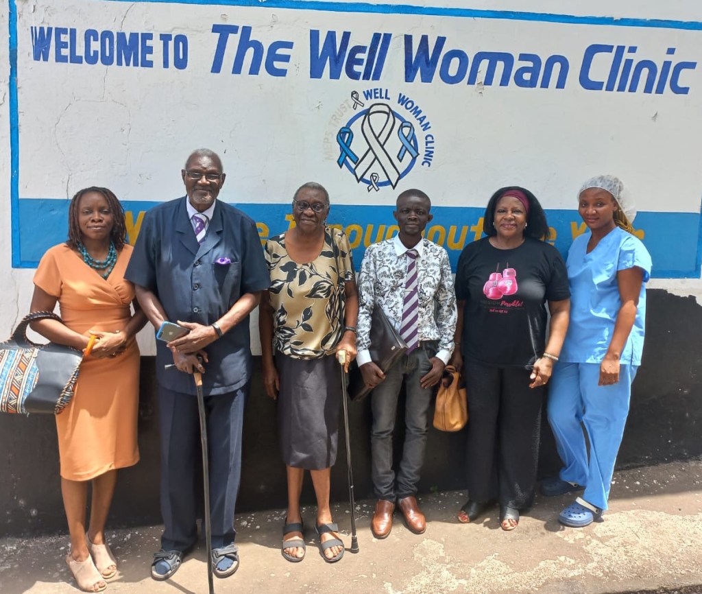 On March 17, 2023, a gift of Le20 million was presented to the Well Woman Clinic (WWC) from the Jestina V. Jones Memorial Fund. The JVJ Fund Board of Directors received yet another exceptional report from WWC that documented how they spent the past year’s donation of Le15 million. Over 58 individuals received free health services that included breast cancer screening, ultra sound scans, chemotherapy medication, lab tests, and diabetes screening. Several individuals received free follow-up treatments that included 5 biopsies through fine needle aspiration cytology. In the photograph above are: From left to right: Chairwoman of the JVJ Memorial Fund Board of Directors and niece of the late Jestina V. Jones, Dr. Dinsie Williams; Dr. Teddy Jones, widower; Mrs. Gloria Dillsworth, sister; Mr. Maoudo Mbah, nephew; Mrs. Jennifer Renner-Thomas, the Programme Director of Well Woman Clinic, and Staff Nurse.